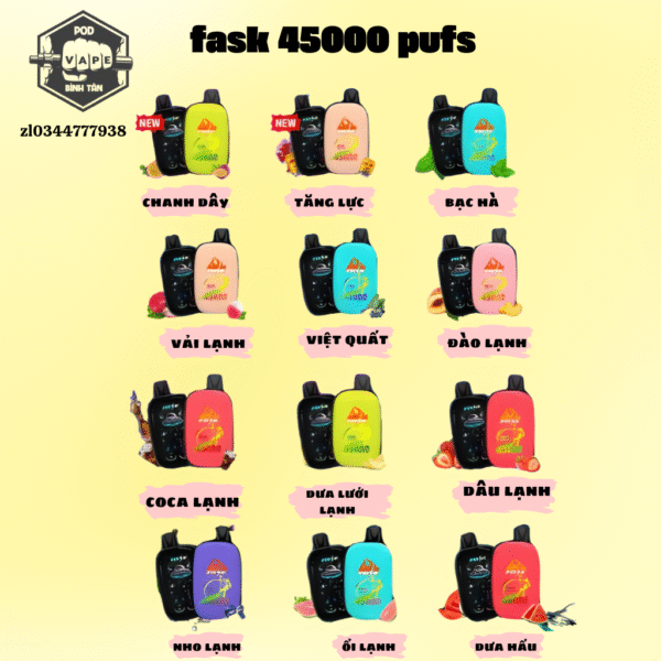 | VỊ | Ổi Lạnh / Guava Ice, Dưa Hấu Lạnh / Watermelon Ice, Bạc Hà Lạnh / Mint Ice, Vải Lạnh / Lychee Ice, Coca Lạnh / Coca Ice, Dưa Lưới Lạnh / Melon Ice, Dâu Lạnh / Strawberry Ice, Việt Quất Lạnh / Blueberry Ice, Đào Lạnh / Peach Ice, Nho Lạnh / Grape Ice, Chanh Dây/Passion Fruit, Tăng Lực/red bull |